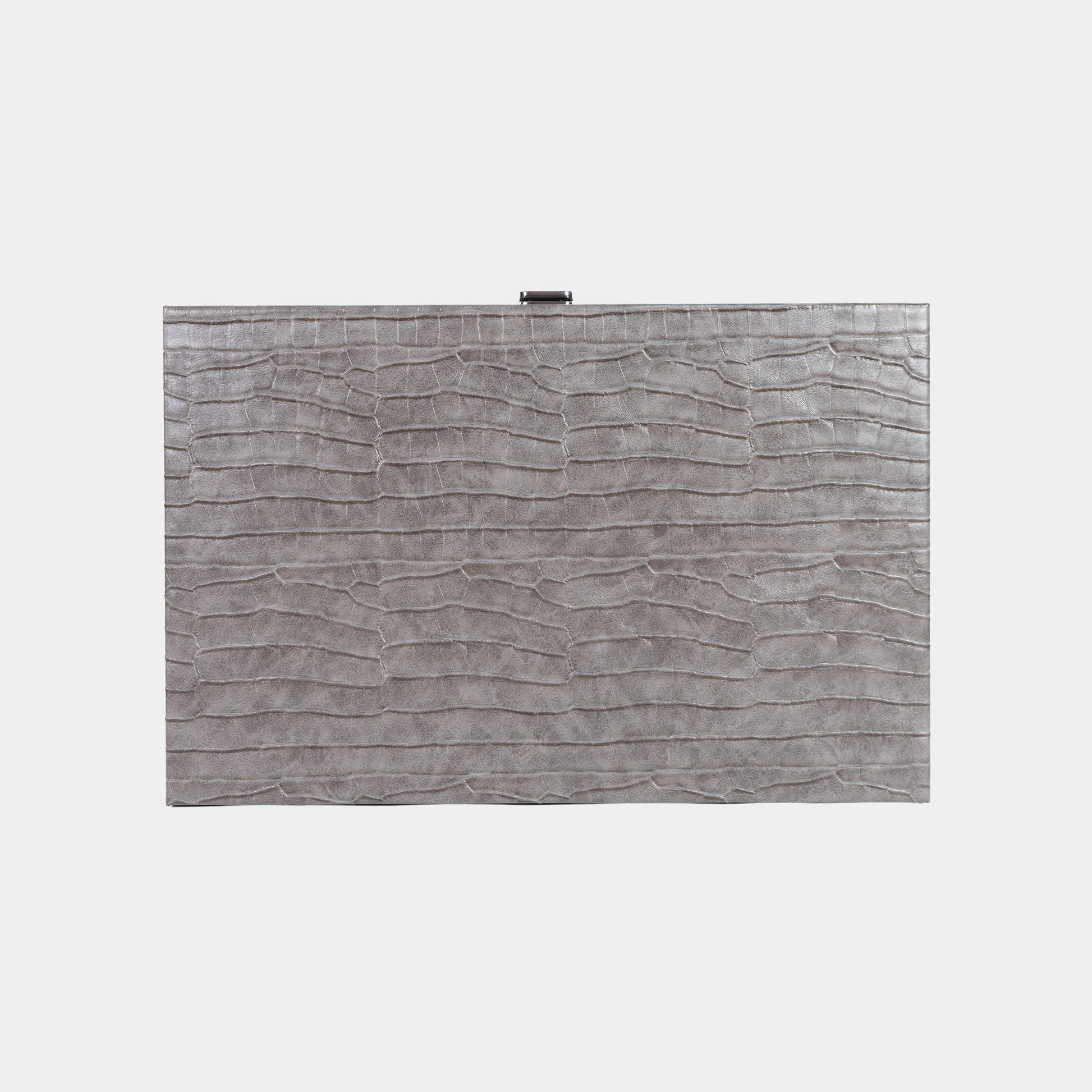 Designed for style and versatility, the Anthracite Grey Alligator Medium Backgammon pairs a soft felt playing surface with textured vegan leather. Its compact format makes it ideal for both home play and travel, without sacrificing elegance.
